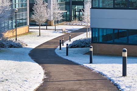 Education: Well positioned grit bins and dependable salt supply help maintain safe pathways, entrances and outdoor spaces for students and staff.